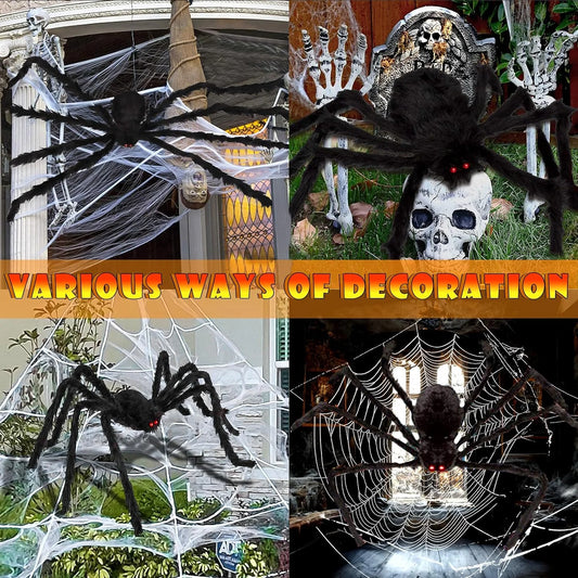 Halloween Decorations Outdoor, 200 LED Halloween Spider Web with 79" Giant Plastics Spider for Halloween Yard Decorations